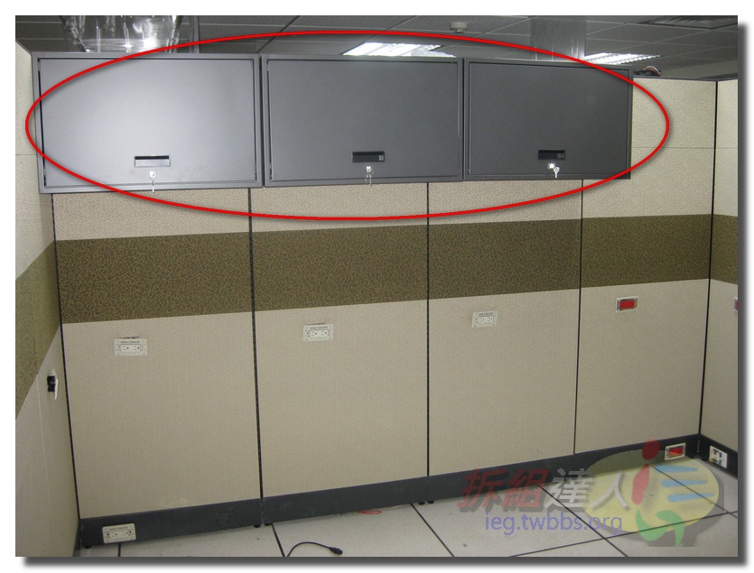 究其緣由,了解到原來他們是因為要放吊櫃,才使用這麼高的屏風。但還好他們使用的是優美公司五公分塊狀屏風,所以還有辦法調整高度,假若當初是使用整片式的那就只有花錢購買一途了。